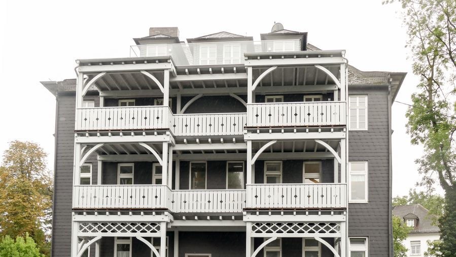 Renovierung und Ausbau des 2. OG und DG, Brandschutztechnische Sanierung, Anbau von Balkonen zur Verbesserung der Wohnqualität.