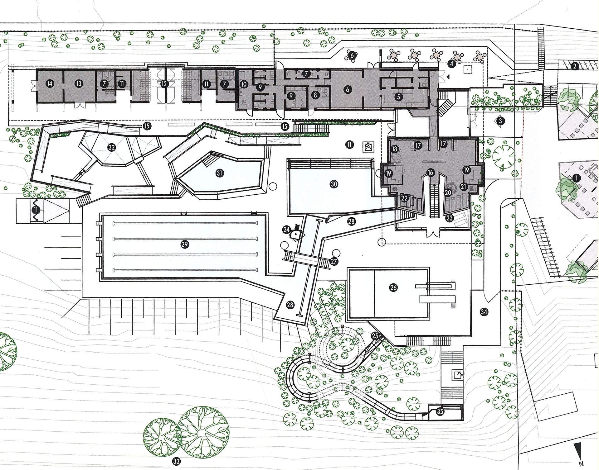 Die Architektur als Bestandteil von Ort und Landschaft. Die Verbandsgemeinde Stromberg ist bestimmt von der bergigen Landschaft, in der Hunsrück und Rheingau aufeinander treffen. Der steile Nordhang wurde bei der Planung zum Thema gemacht, es wurde nicht gegen die Topografie gebaut sondern mit ihr gearbeitet.
